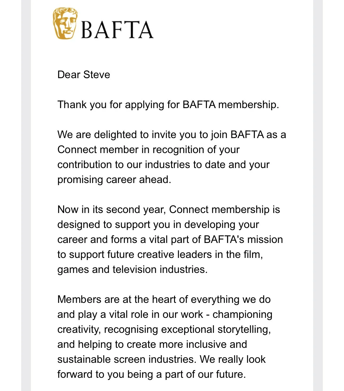 July brought some wonderful news! I’m very pleased to say that I have been accepted as a BAFTA Connect member and am thrilled to be joining this legendary organisation.